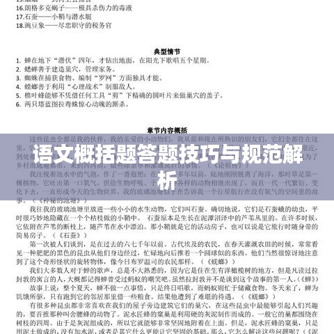 在语文学习中,概括题是常见的一类题型,它旨在考查学生对文本内容的理解、分析和提炼能力,概括题形式多样,包括文本主旨概括、段落大意概括、人物形象概括等,为了准确解答概括题,学生需要掌握一定的答题规范。