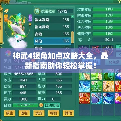 《神武4》作为一款热门的网络游戏,吸引了众多玩家的关注,银角作为游戏中一个重要的角色,合理的加点对于提升角色实力至关重要,本文将为大家带来最新的银角加点攻略,帮助玩家更好地掌握加点技巧,提升游戏体验。