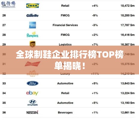 制鞋业是一个全球性的产业,涵盖了从原材料生产到成品鞋制造的各个环节,随着全球经济的不断发展和消费者需求的日益增长,制鞋行业也在不断变化和创新,本文将介绍全球制鞋企业的排名,探讨其背后的因素,并分析未来制鞋行业的发展趋势。