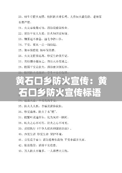 防火宣传工作是一项长期而艰巨的任务,黄石口乡政府将继续加大力度,确保防火宣传工作取得实效。让我们共同努力,为构建和谐、安全的黄石口乡贡献力量。