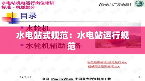 运行规范:包括水电站的运行管理、设备维护、故障处理、调度运行等,保障水电站安全、稳定、高效地运行。