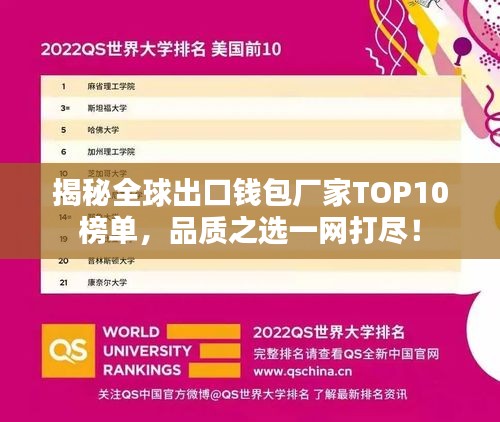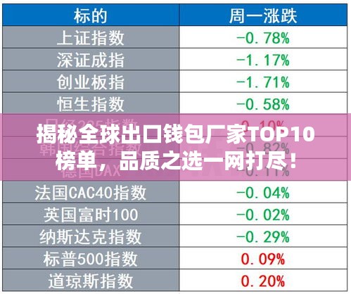随着国际贸易的繁荣和消费者对时尚配饰的不断追求,钱包市场在全球范围内持续扩大,本文将介绍出口钱包厂家排名前十名,这些厂家以其卓越的品质、创新的设计和优质的服务赢得了国内外客户的信赖。
