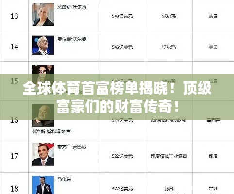 全球体育首富榜单揭晓!顶级富豪们的财富传奇!