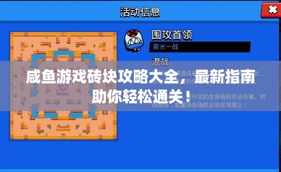 随着游戏产业的飞速发展,各类游戏层出不穷,其中咸鱼游戏以其独特的玩法和丰富的关卡吸引了大量玩家,本文将为大家带来咸鱼游戏砖块攻略的最新指南,帮助玩家更好地掌握游戏技巧,提升游戏体验。