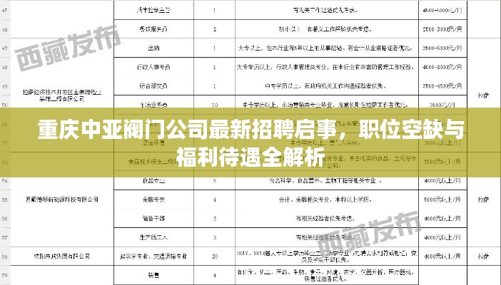 重庆中亚阀门公司最新招聘启事,职位空缺与福利待遇全解析