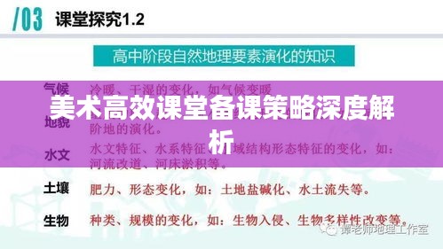 随着教育改革的深入推进,课堂教学的高效性已成为广大教育工作者的追求,美术学科作为培养学生审美情趣、创新能力和人文素养的重要课程,其高效课堂的构建显得尤为重要,本文将从美术高效课堂的备课策略入手,探讨如何提升美术课堂教学效果。