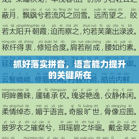 在当今社会,掌握一门语言的拼音对于提高个人的语言能力和交流水平至关重要,无论是学习新语言还是提高母语水平,抓好落实拼音都是一项基础而重要的任务,本文将探讨如何抓好落实拼音,为提高语言能力打下坚实的基础。