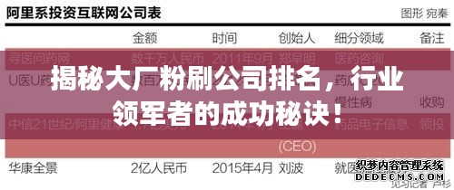 揭秘大厂粉刷公司排名,行业领军者的成功秘诀!