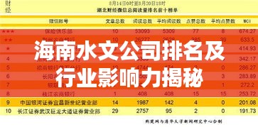 海南作为中国南海的重要省份,近年来经济发展迅速,其水文行业亦随之崛起,本文将探讨海南水文公司的排名及其行业影响力,为读者揭示这些公司在海南乃至全国范围内的地位与贡献。