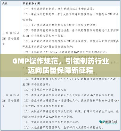 在当今的制药行业中,GMP良好操作规范已经成为一个不可或缺的质量保障标准,GMP,即药品生产质量管理规范,是一套针对药品生产和质量控制的具体操作要求,它旨在确保药品的安全性和有效性,从而保障公众健康,本文将详细介绍GMP良好操作规范的重要性、内容及其在制药行业中的应用。