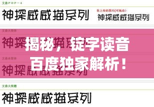 百度是中国最大的搜索引擎,拥有庞大的用户群体和丰富的数据资源,在汉字读音查询方面,百度提供了强大的支持,用户只需在百度搜索框中输入想要查询的字词,如“锭读音”,便能迅速获得相关结果。