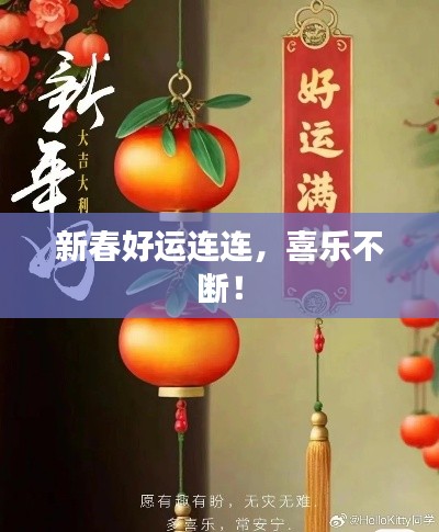 新春喜乐好运不断,让我们一起迎接新的一年,让我们珍惜眼前的幸福,感恩生活中的点滴关怀,让我们共同祈愿新春的喜悦和幸福能够伴随我们度过每一个日日夜夜,让我们共同创造美好的未来。