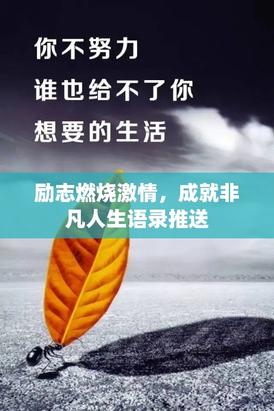 在这个充满挑战与机遇的时代,我们都需要一些励志的话语来点燃内心的激情,激发前进的动力,为你推送一篇励志语录,希望能在你追求梦想的道路上,为你带来力量和鼓励。