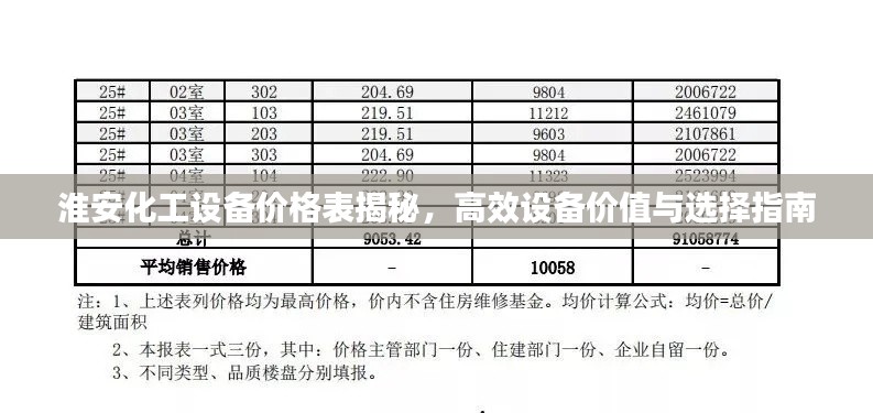 随着化工行业的快速发展,高效化工设备的价格及选择成为了行业内关注的焦点之一,淮安作为全国重要的化工产业聚集地,其高效化工设备价格表更是备受关注,本文将详细介绍淮安高效化工设备的价格及其相关因素,帮助您了解化工设备的价值与选择。