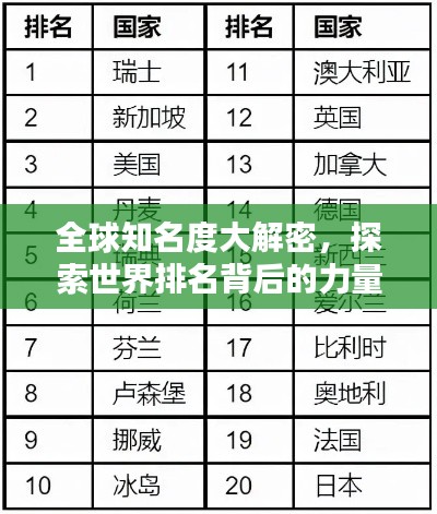 全球知名度大解密,探索世界排名背后的力量之源