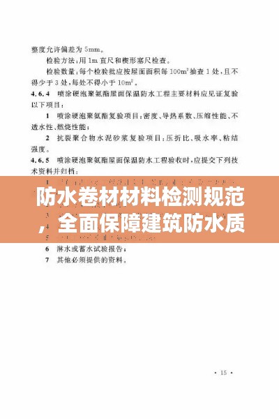 防水卷材作为建筑物的重要防水材料,其质量直接影响建筑物的防水效果和使用寿命,制定一套科学、合理的防水卷材材料检测规范,对于保障建筑工程质量、提高建筑物使用寿命具有重要意义。