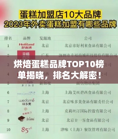烘焙行业日益繁荣,蛋糕作为其中的重要品类,吸引了众多消费者的目光,本文将为您介绍烘焙蛋糕品牌前十名的排名,带您了解这些品牌的特点和优势。