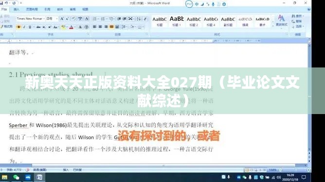 新奥天天正版资料大全027期(毕业论文文献综述)概述