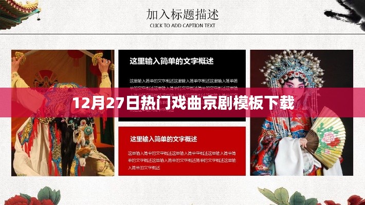 12月27日热门戏曲京剧模板下载为广大京剧爱好者提供了便捷的学习途径,让我们从模板下载开始,逐步领略京剧的魅力,感受中国传统文化的博大精深。