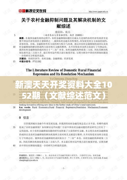 本综述对“新澳天天开奖资料大全1052期(文献综述范文)”进行了全面的梳理和分析,旨在提供详细的文献资料内容概览,不含赌博和彩票相关讨论。通过对文献的综合研究,提炼出1052期文献的核心内容和特点,以便读者能够了解文献资料的具体内容和研究重点。
