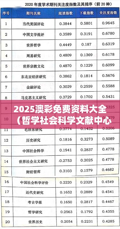 2025澳彩免费资料大全(哲学社会科学文献中心)