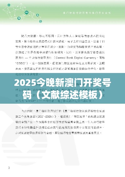 “2025今晚新澳门开奖号码(文献综述模板)”是一种特殊的文献综述模板,它主要应用于对未来澳门某一领域或事件的文献资料进行综述和分析。虽然这个标题听起来可能与彩票相关,但实际上这与赌博或彩票无关,而是一个关于未来澳门某一领域发展的综述框架。本文将详细介绍这个模板的具体内容和应用方式,以便读者对该模板有一个清晰的了解。