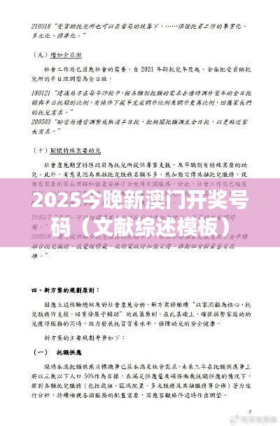 “2025今晚新澳门开奖号码(文献综述模板)”是一个系统性的框架,它按照特定的结构组织内容,以便对澳门在特定时间范围内的发展进行综述。以下是模板的结构解析: