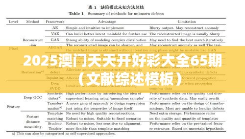 2025澳门天天开好彩大全65期文献综述模板的目的是为了规范和提高学术文献综述工作的质量。通过详细解释文献综述的目的、结构和撰写原则,本模板为研究者提供了一个全面、系统的框架,使其能够有效地搜集、整理、分析和评述相关文献,并在此基础上确定研究领域的发展趋势和未来方向。