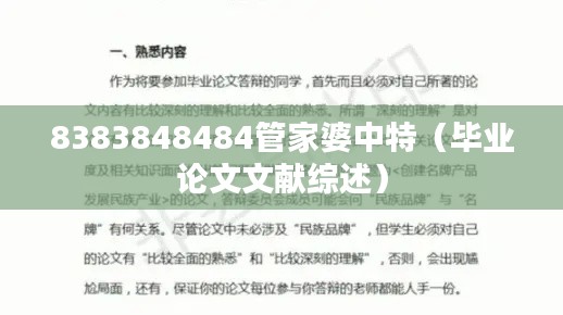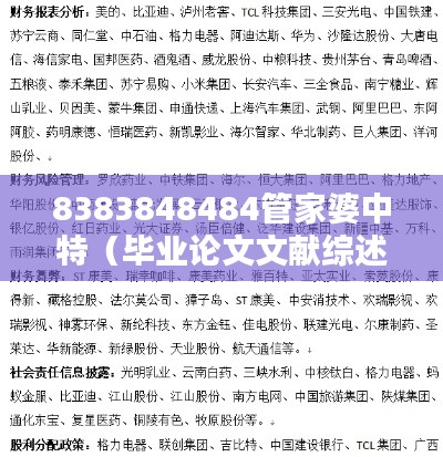 8383848484管家婆中特(毕业论文文献综述)是一项针对特定学科领域的文献综述研究,旨在通过系统地梳理和评估相关文献资料,揭示研究领域的知识体系及其演进过程。本文致力于详细而准确地总结现有研究,为读者呈现出该领域的研究现状和未来趋势。