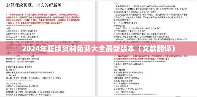 2024年正版资料免费大全最新版本(文献翻译)概述