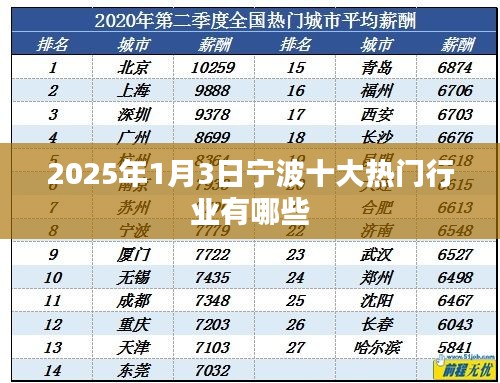 随着科技的飞速发展和全球经济的深度融合,宁波这座美丽的港口城市也在不断地焕发新的生机与活力,作为长江三角洲地区的重要节点城市,宁波的经济发展日新月异,各种新兴行业如雨后春笋般涌现,在不久的将来,即2025年1月3日,宁波的十大热门行业会有哪些呢?本文将从当前的发展趋势和未来的行业前景出发,对这一问题进行深度剖析。