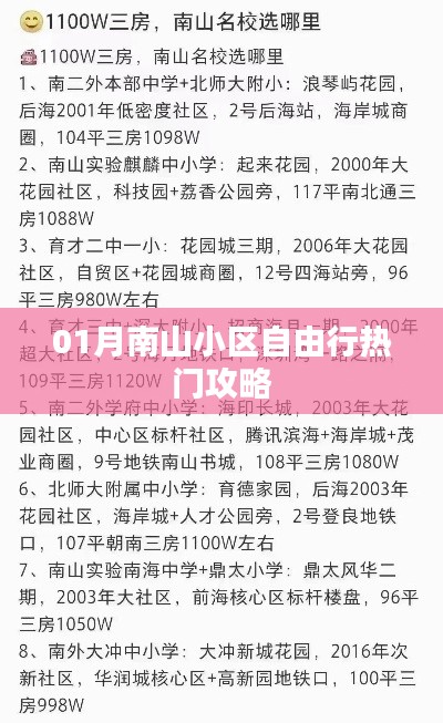 希望这份《01月南山小区自由行热门攻略》能对你的旅行有所帮助,在旅行过程中,请注意安全,遵守当地法律法规,享受美好的时光,祝你在南山小区的旅行愉快!