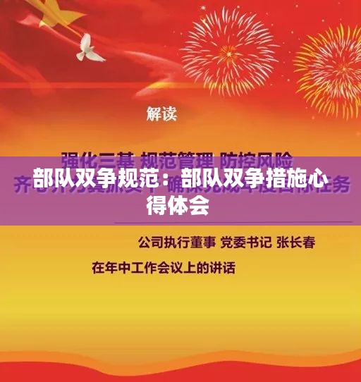 <p>为了有效实施部队双争规范,部队采取了一系列措施:</p>