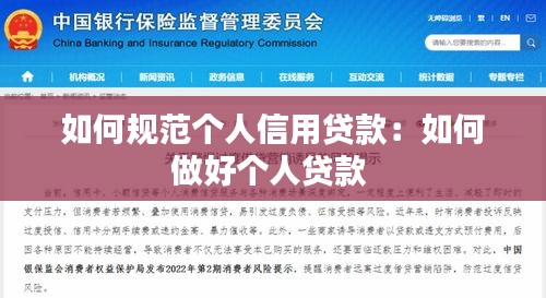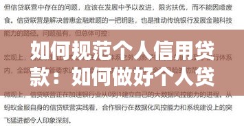 如何规范个人信用贷款:如何做好个人贷款