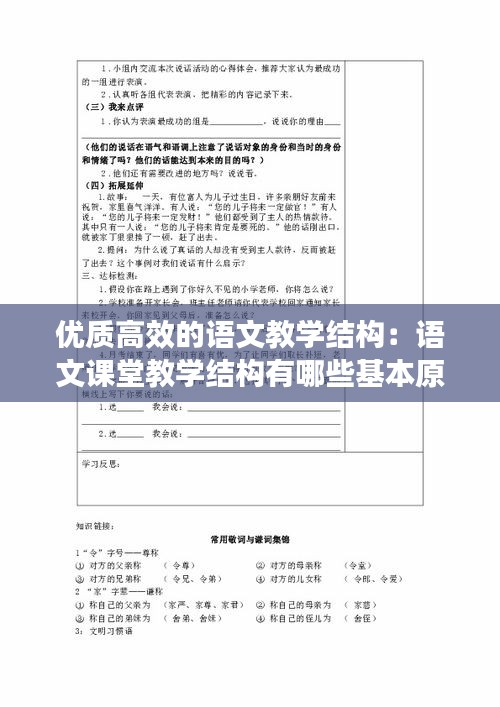 优质高效的语文教学结构首先应明确教学目标。教学目标应具体、可衡量,既要注重知识传授,也要关注能力培养和情感态度价值观的塑造。教师应根据学生的年龄特点、认知水平以及教学大纲的要求,设定合理的教学目标。