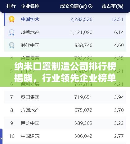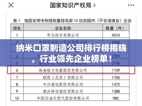 纳米口罩制造公司排行榜揭晓,行业领先企业榜单!