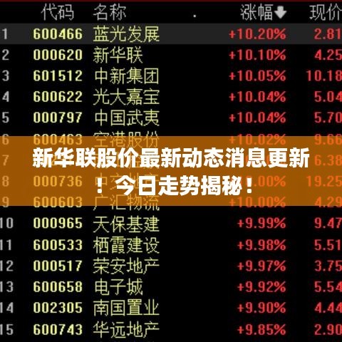 随着市场经济的发展,企业股价的波动成为了投资者关注的热点,作为知名企业,新华联的股价动态一直备受关注,本文将为您详细介绍新华联的最新消息以及今日股价情况。